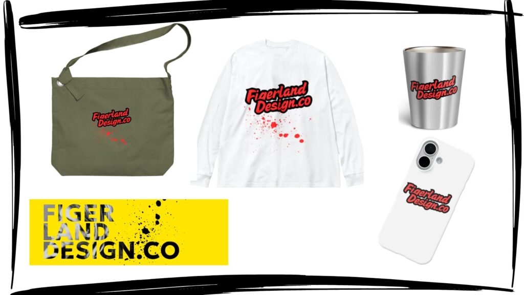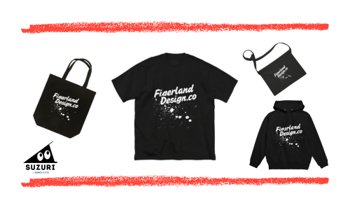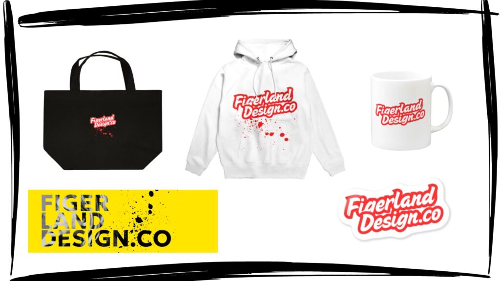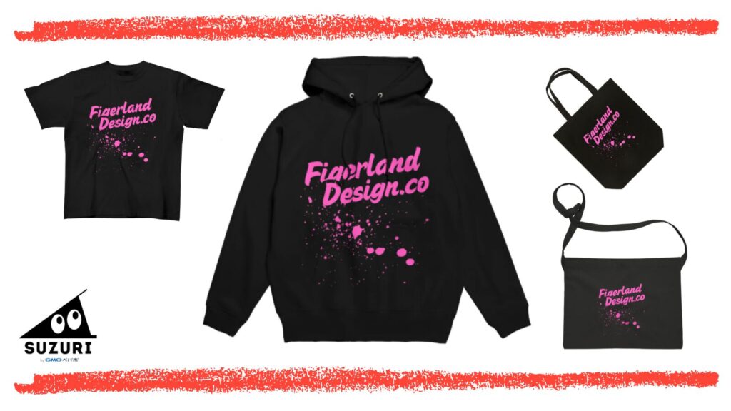 FigerlandDesign.coのロゴやオリジナルデザインをあしらったTシャツ、パーカー、トートバッグなど、こだわりのグッズを「SUZURI」にて販売中です。